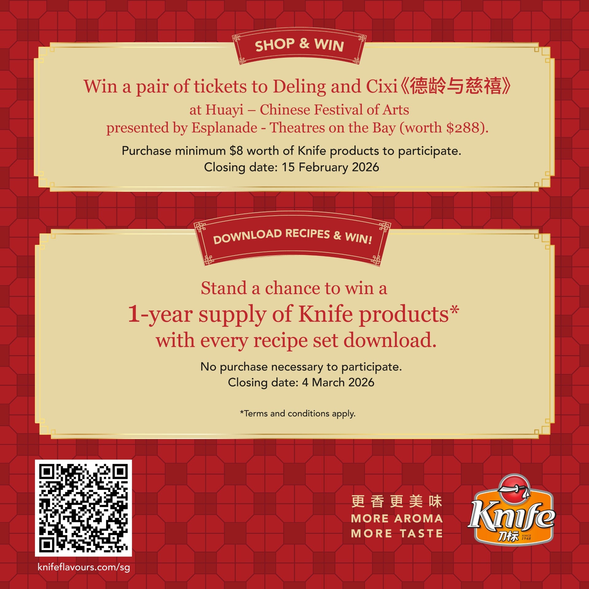 Knife brand is a household name in Singapore that is synonymous with wholesome family cooking since 1948. A perfect complement to Asian flavours, Knife brand brings the family together over the dining table with delicious home cooked meals.
