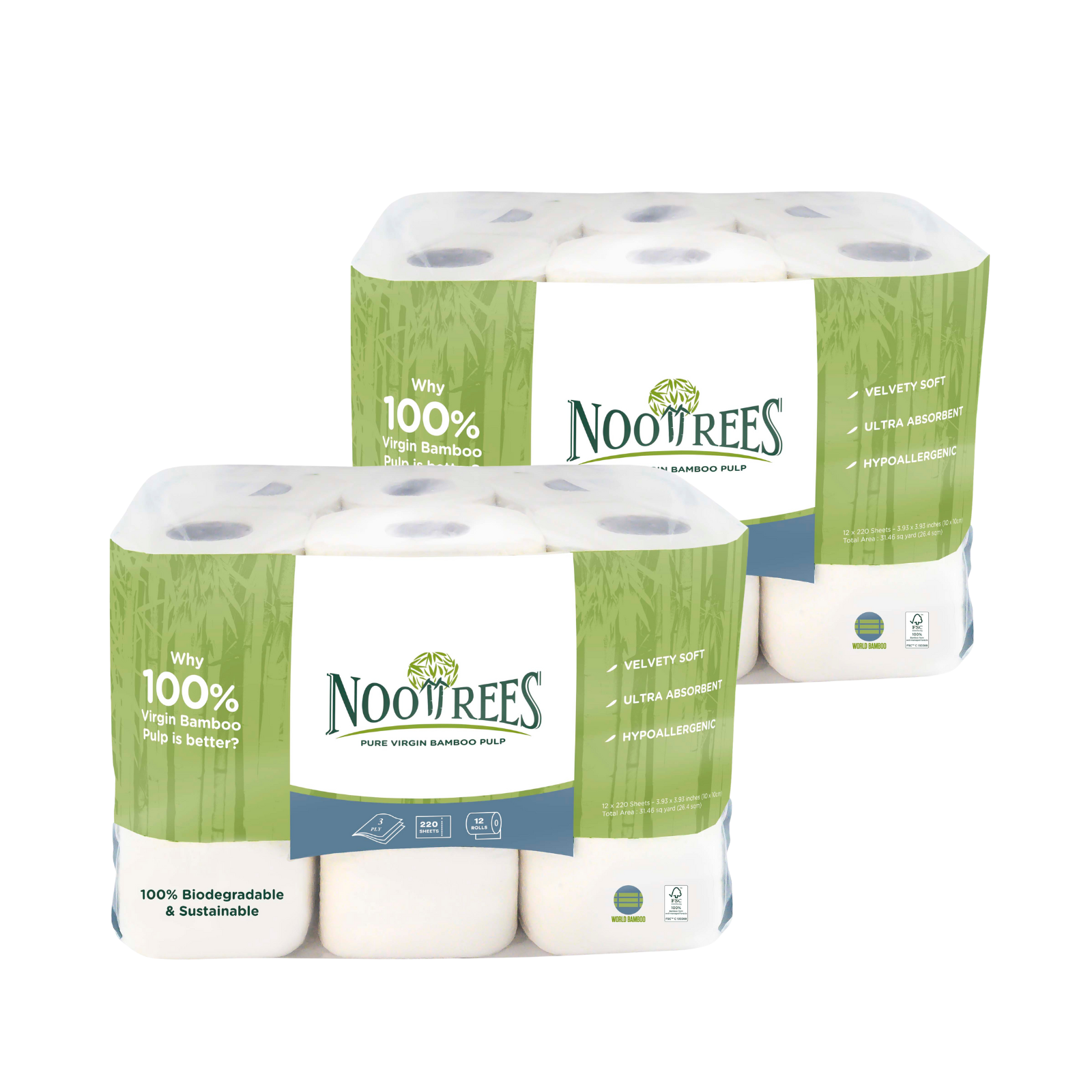 NooTrees Bamboo 3-ply Bathroom Rolls (12 Rolls x 220 Sheets)