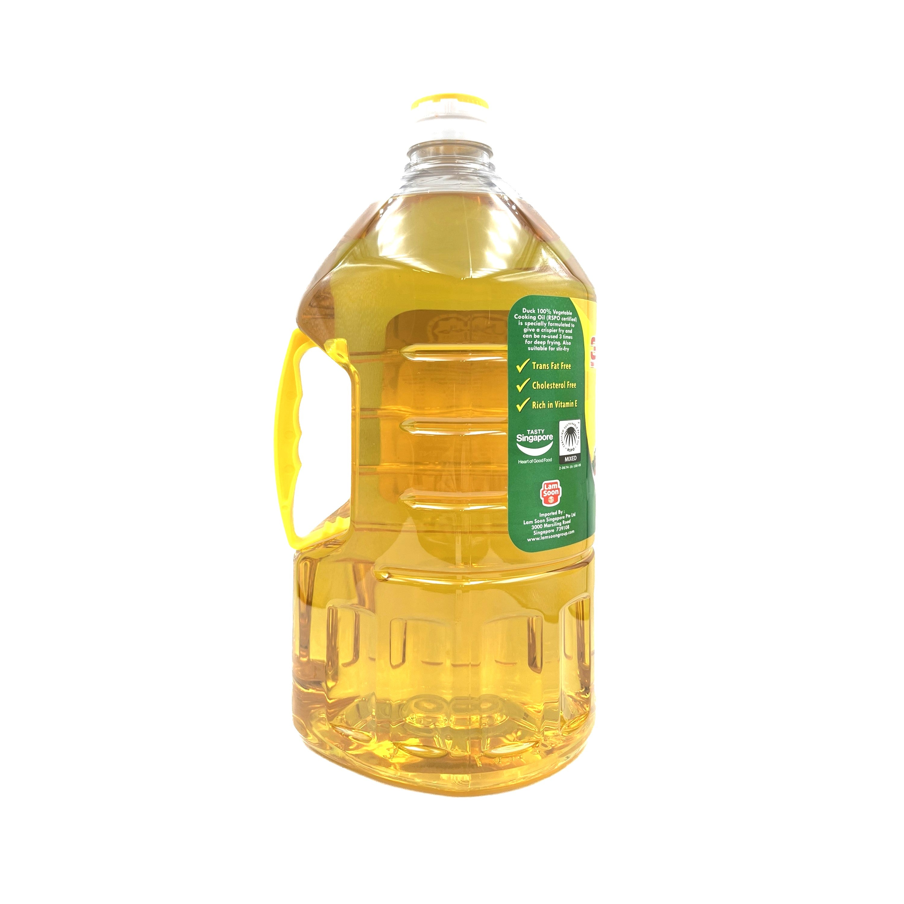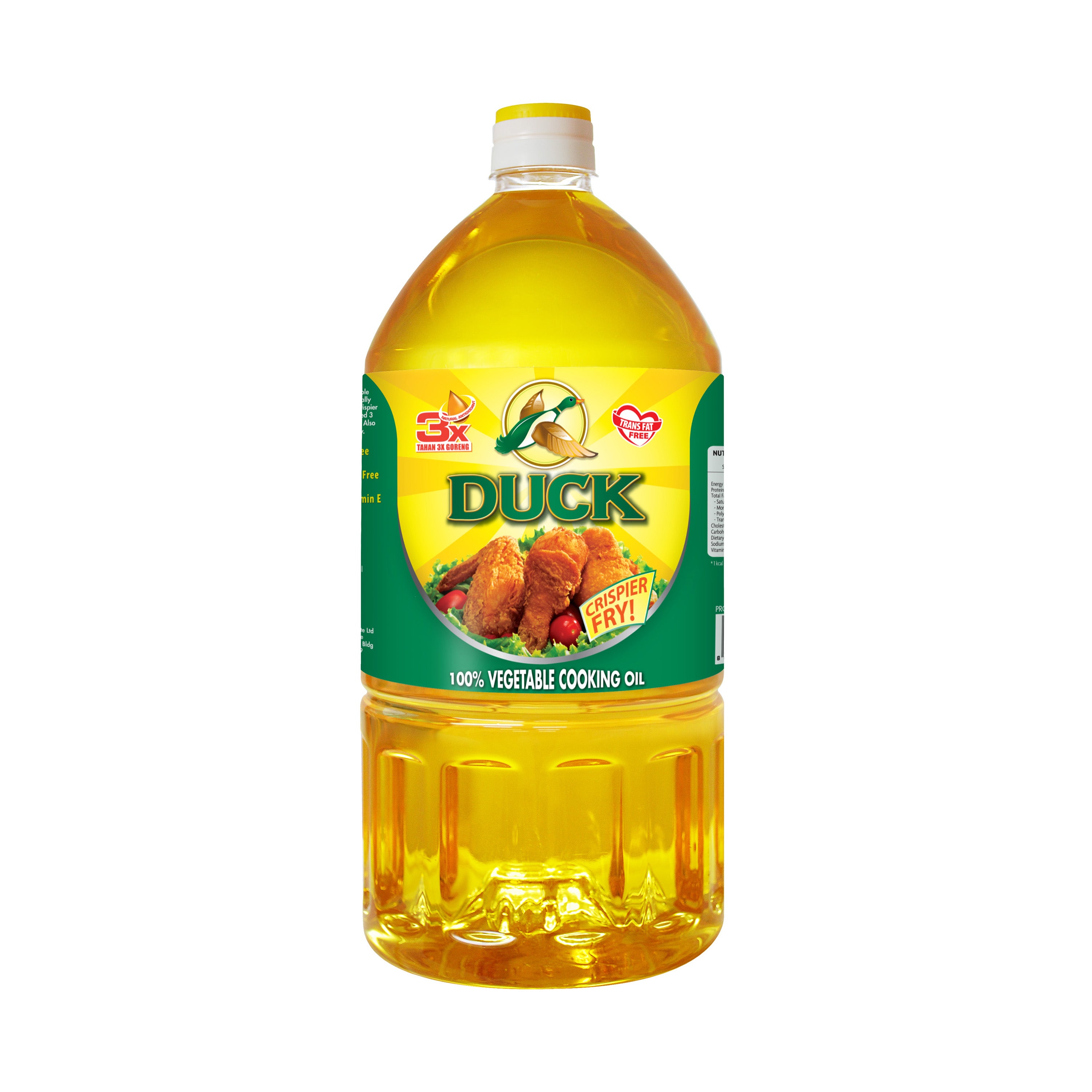 Duck brand vegetable oil is specially formulated to give a crispier fry and be re-used 3 times for deep frying.