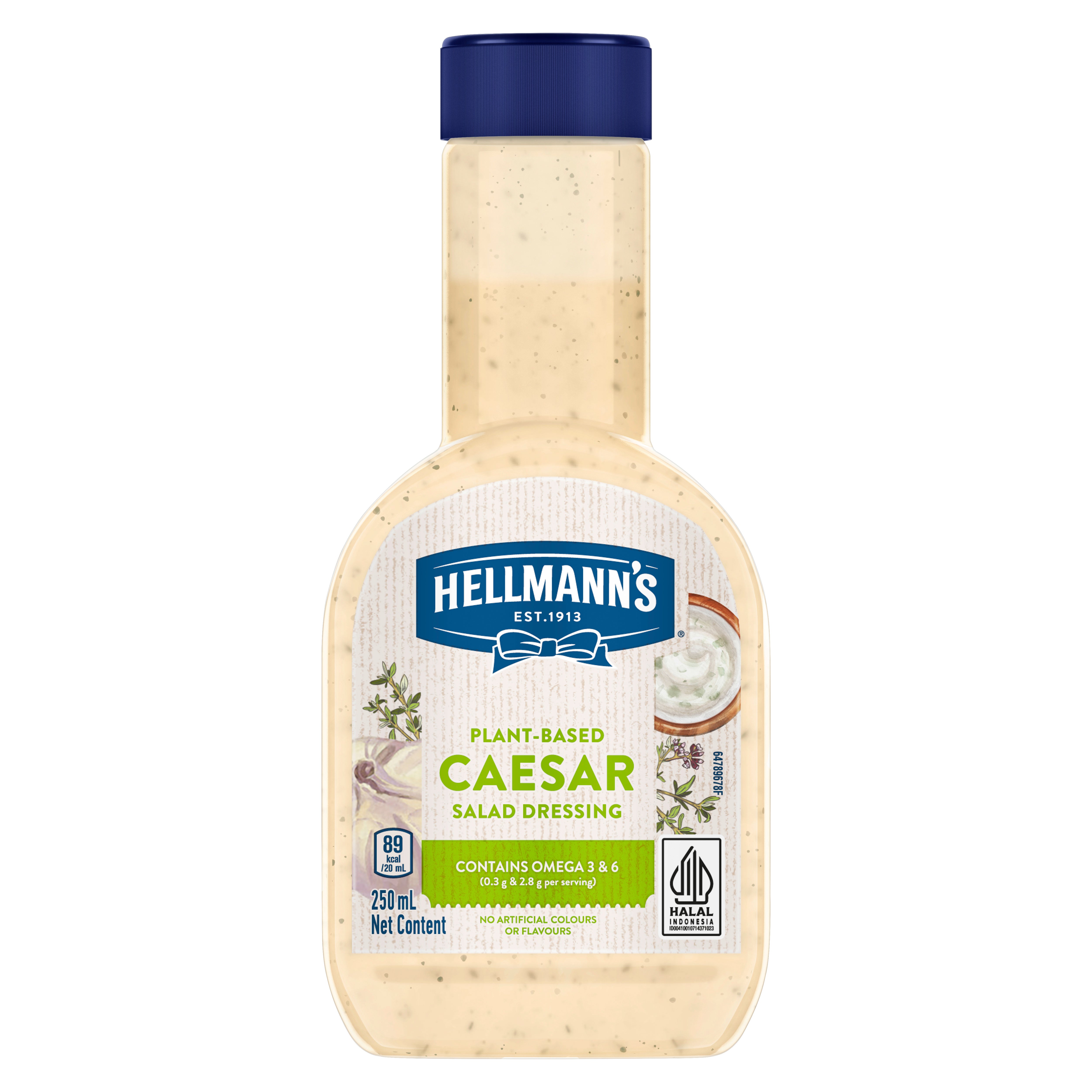 Hellmann’s Caesar Salad Dressing is creamy and plant-based, with subtle garlic and herb flavours. Great for salads, wraps, or as a simple dip.